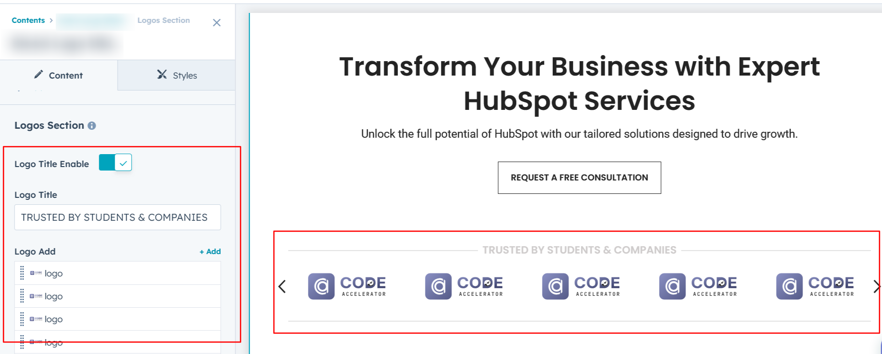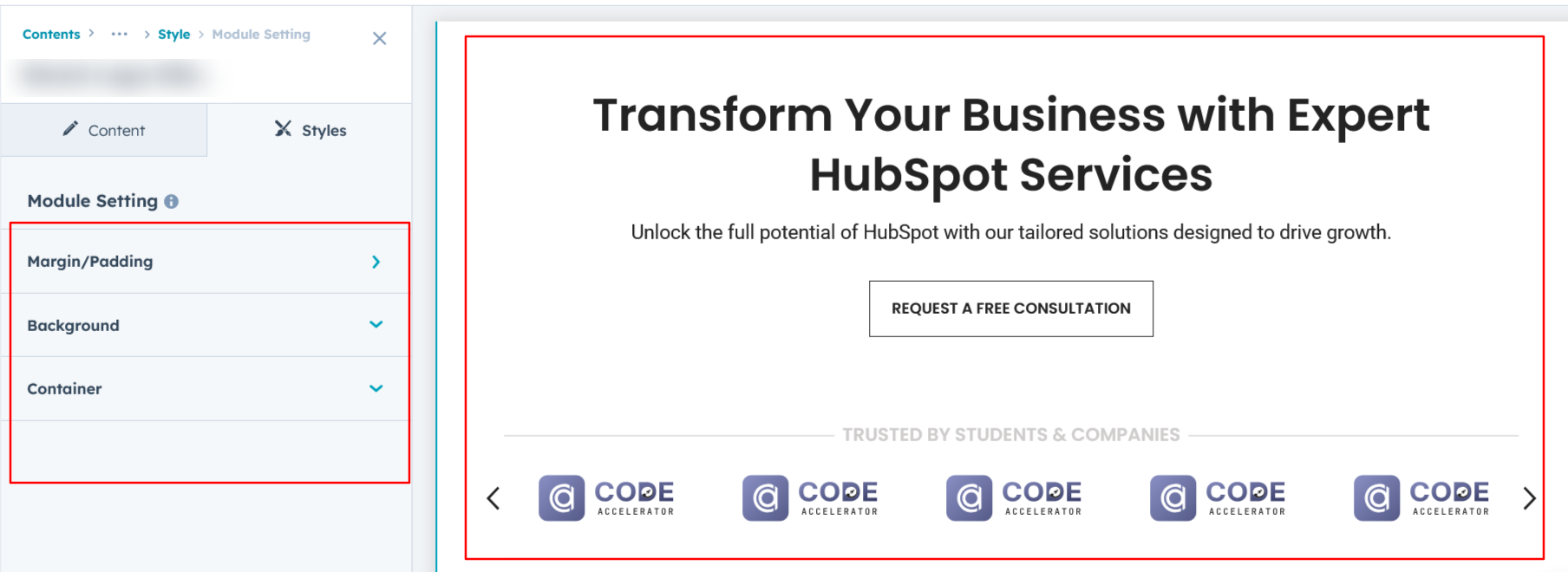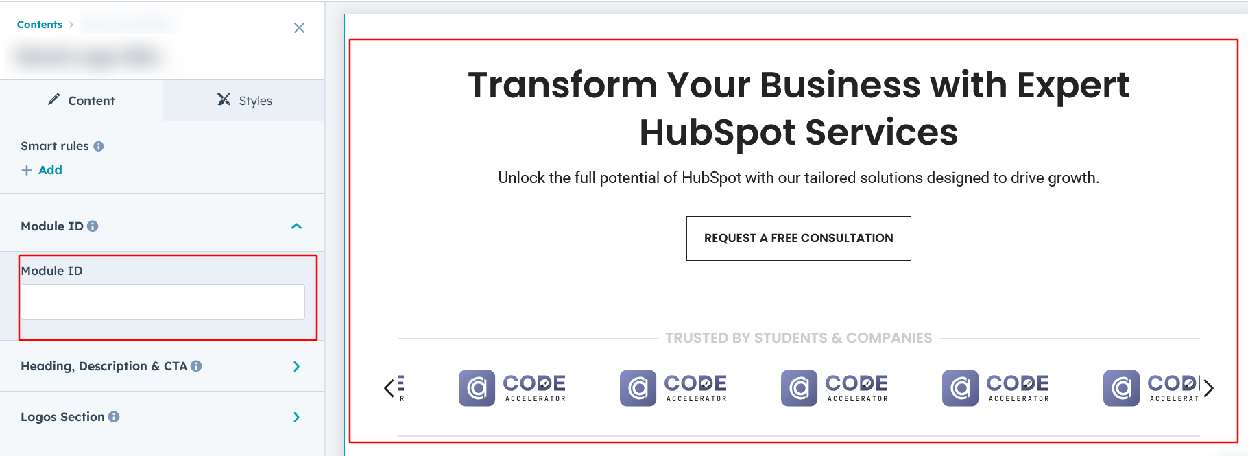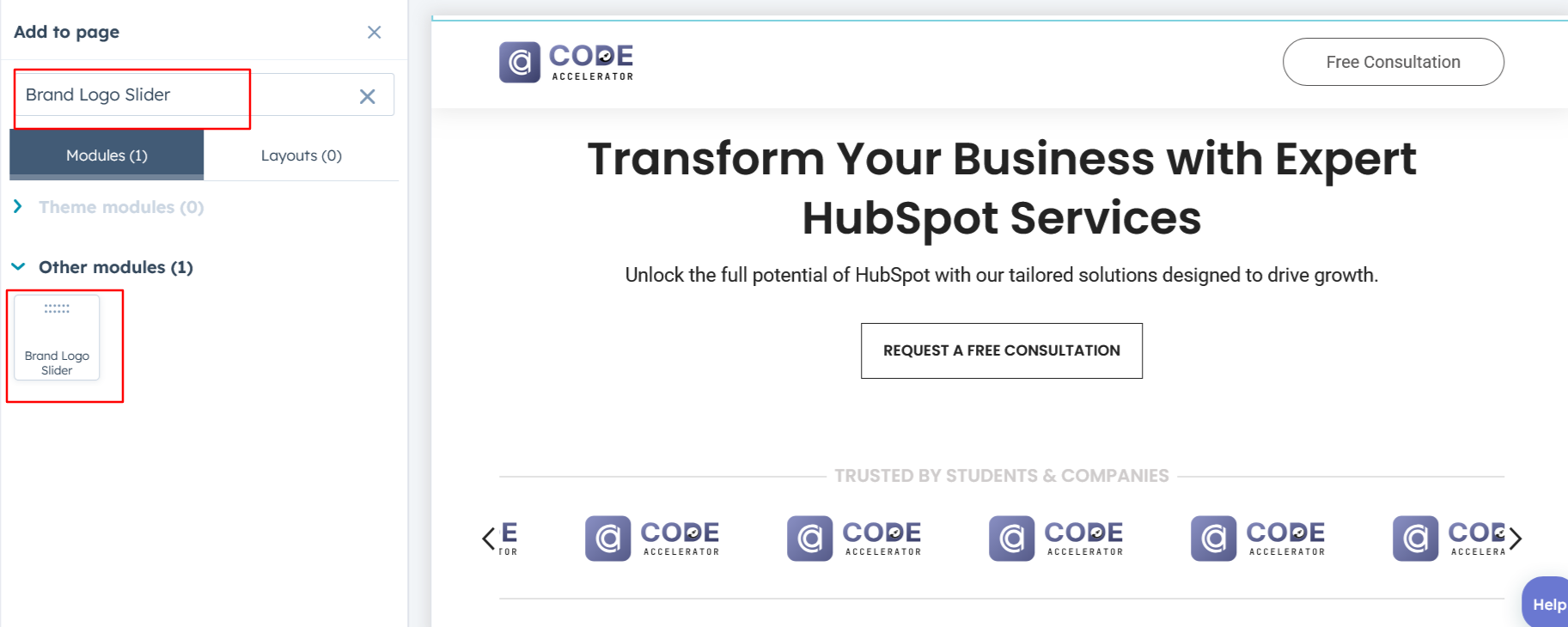 We hope you enjoy using brand logo slider module to create a seamless experience for both your users and your marketing team. At Code Accelerator, we're committed to ensuring your HubSpot experience is exceptional. If you need a custom HubSpot module or require a tailored HubSpot CMS or CRM setup, please don’t hesitate to Contact Us.