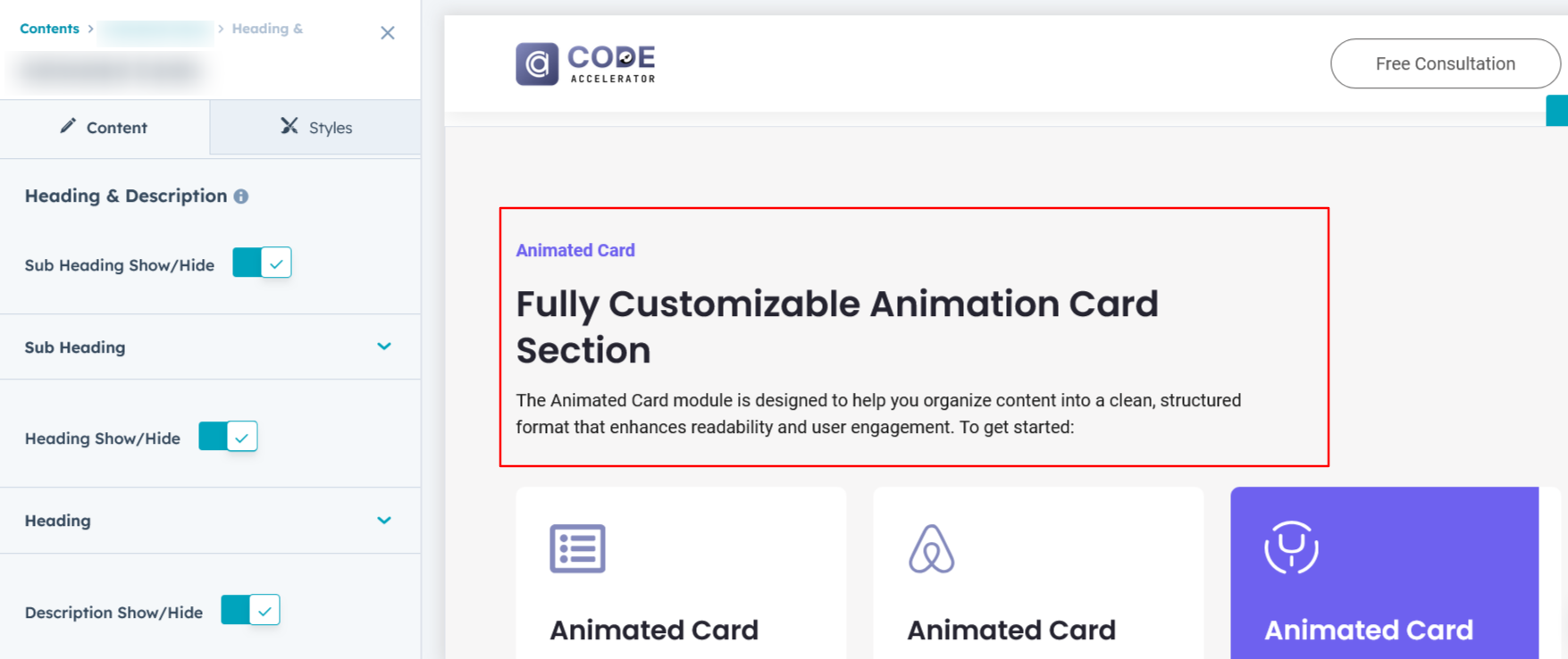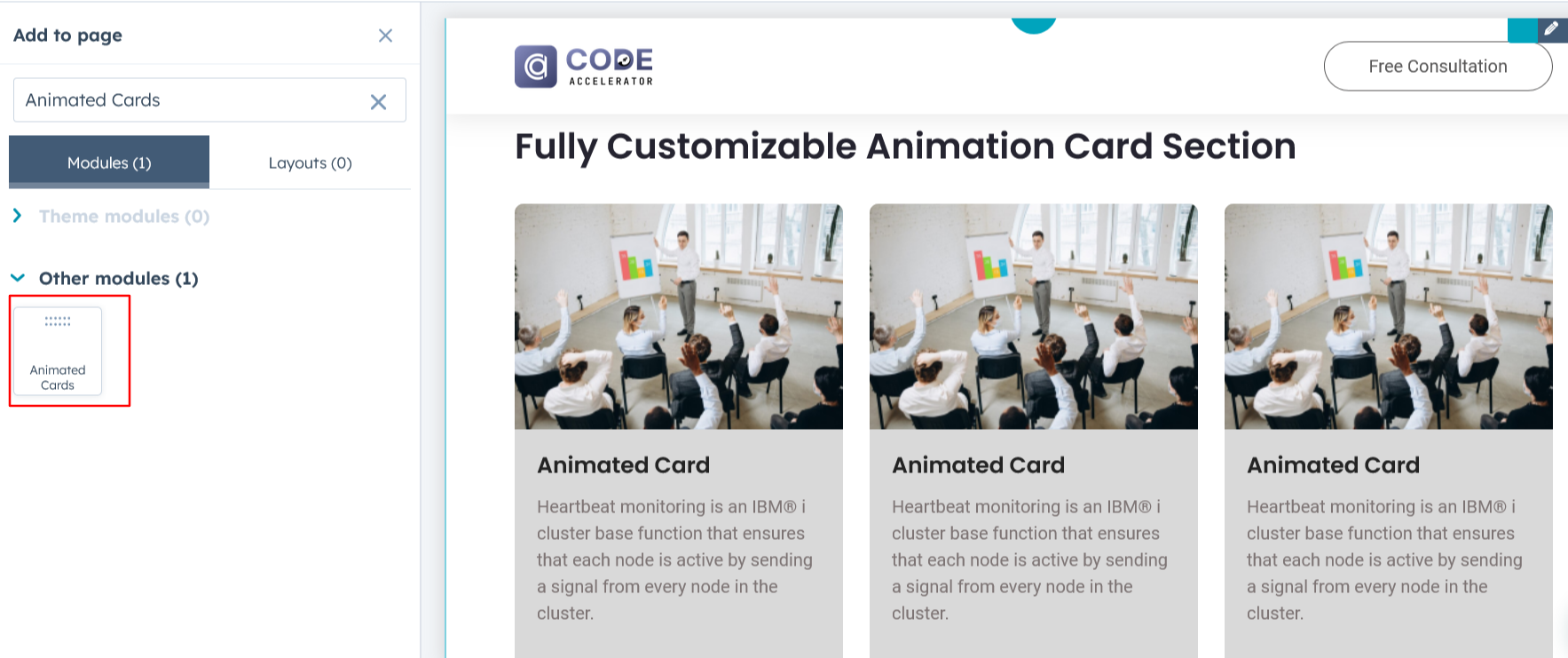 We hope you enjoy using animated cards module to create a seamless experience for both your users and your marketing team. At Code Accelerator, we're committed to ensuring your HubSpot experience is exceptional. If you need a custom HubSpot module or require a tailored HubSpot CMS or CRM setup, please don’t hesitate to Contact Us.