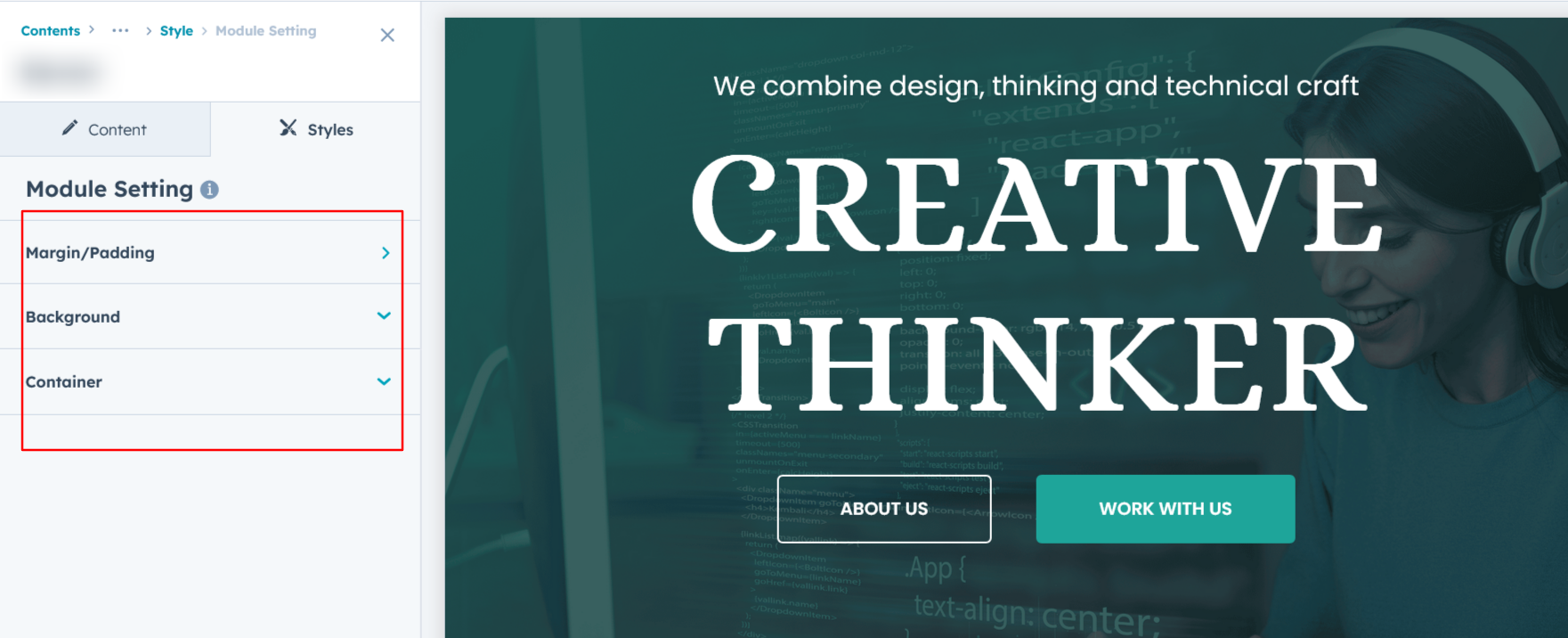 Adjust the margins, padding, background colors, and container width to achieve your desired look and feel for the module. This flexibility lets you fine-tune the layout and aesthetics, ensuring your design is both visually appealing and user-friendly.