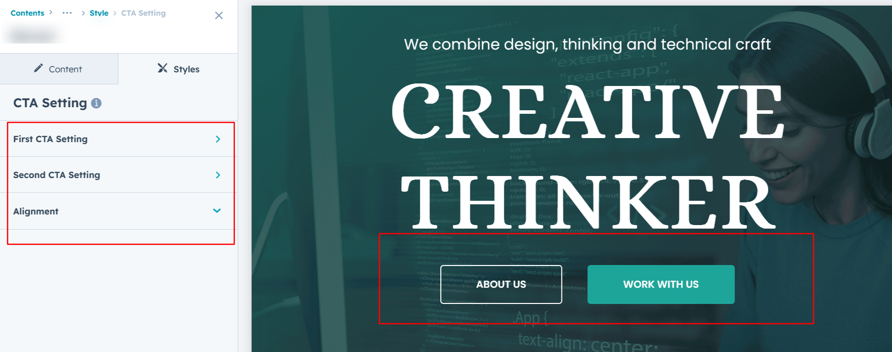 You can customize the Call-to-Action (CTA) by adjusting the typography, font size, weight, color, background color, border, corner radius, and spacing, ensuring it aligns perfectly with your design and branding.
