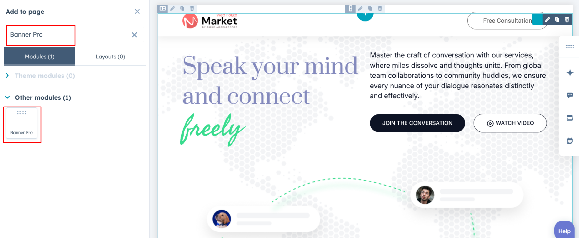 Search for "Banner Pro" and drag and drop the module into the desired location on your page.