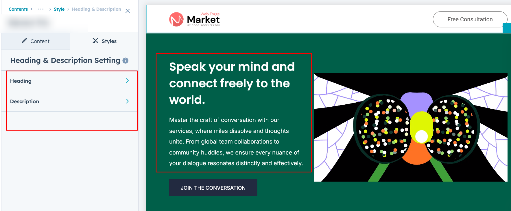 Heading & Description Setting :