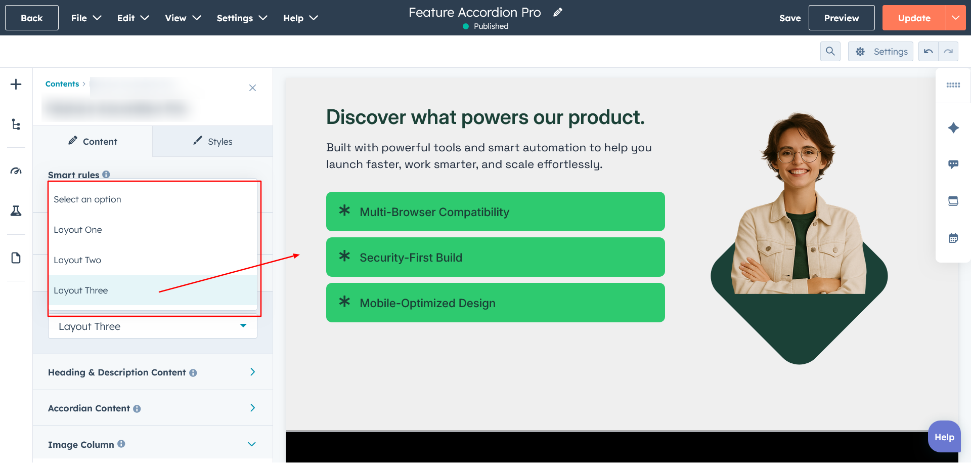 How to Set Up the Use Feature Accordion Pro in HubSpot :