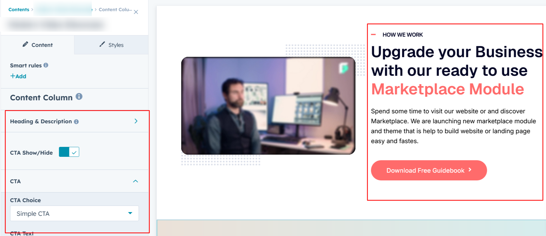 Select from different CTA types (e.g., Simple CTA, HubSpot CTA). Tailor the call-to-action style to your campaign.