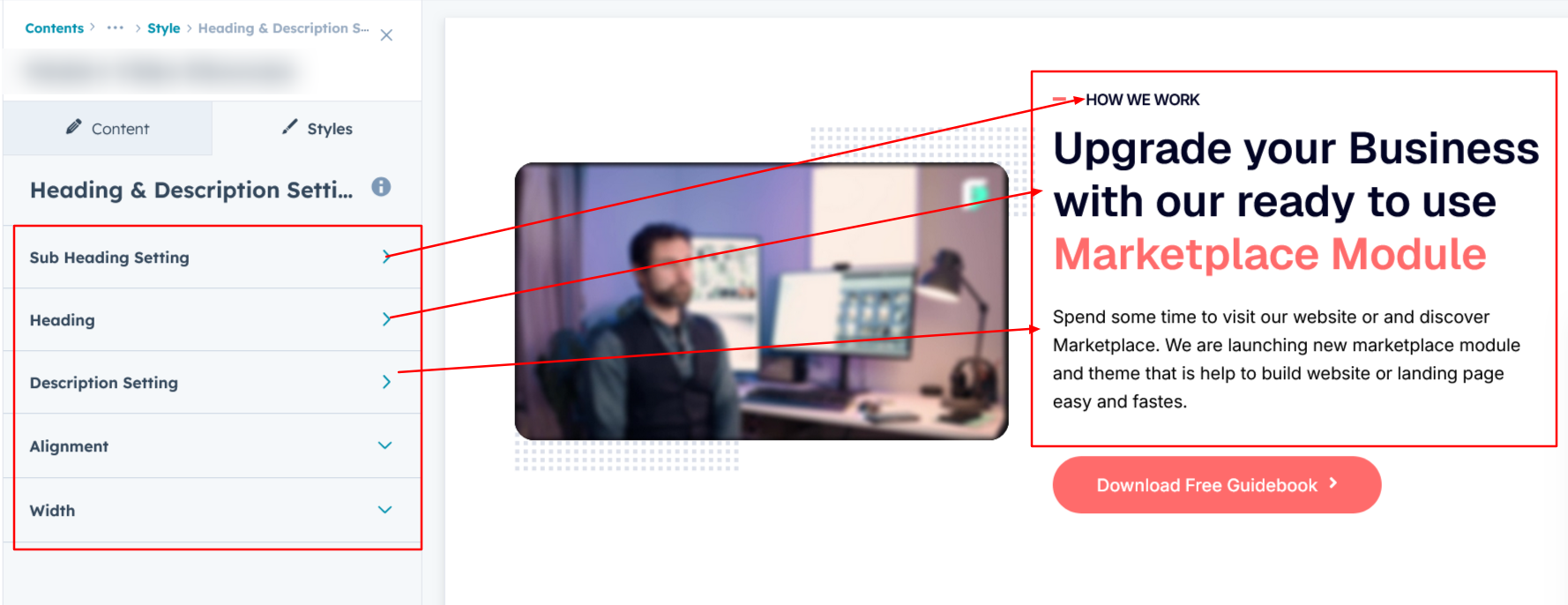 - Customizable Headings & Descriptions: Font size, weight, and color controls.