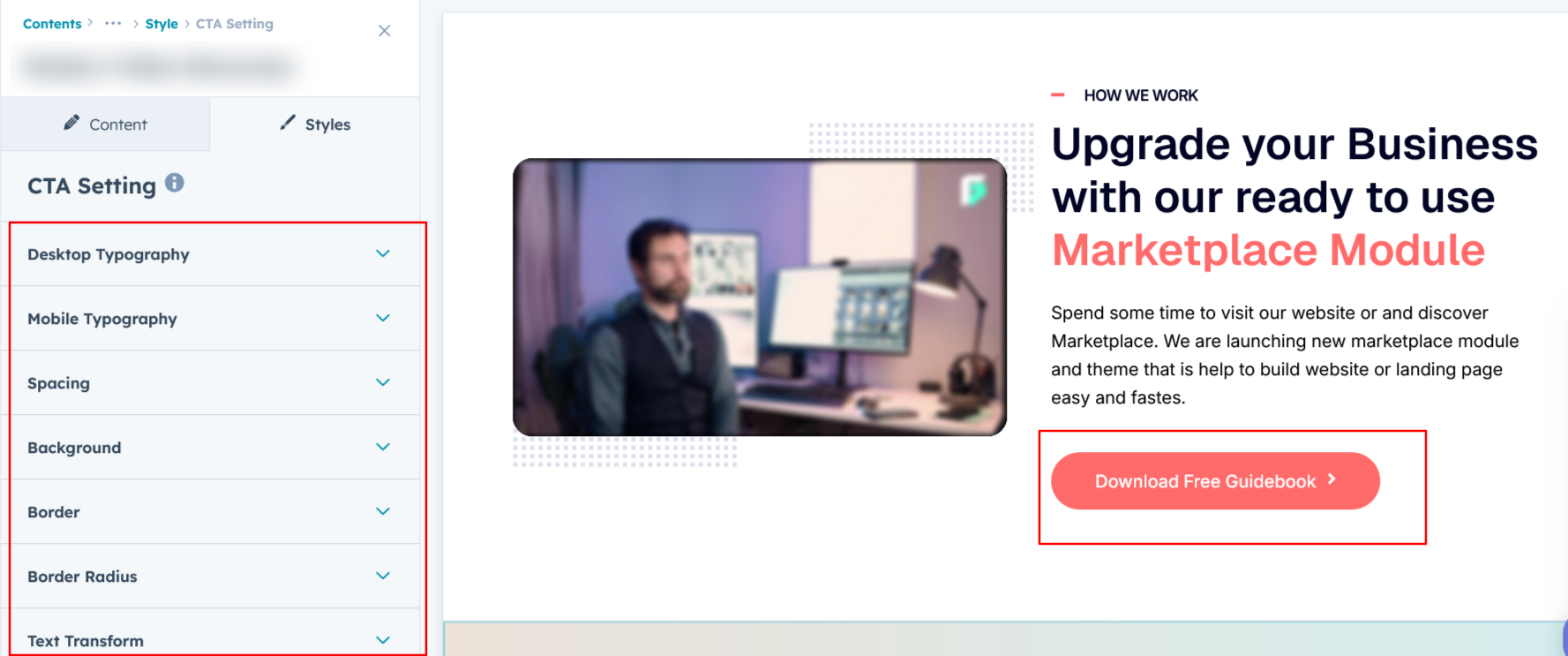 Adjust padding and margin around the CTA button. Helps maintain balanced layout and proper visual hierarchy.