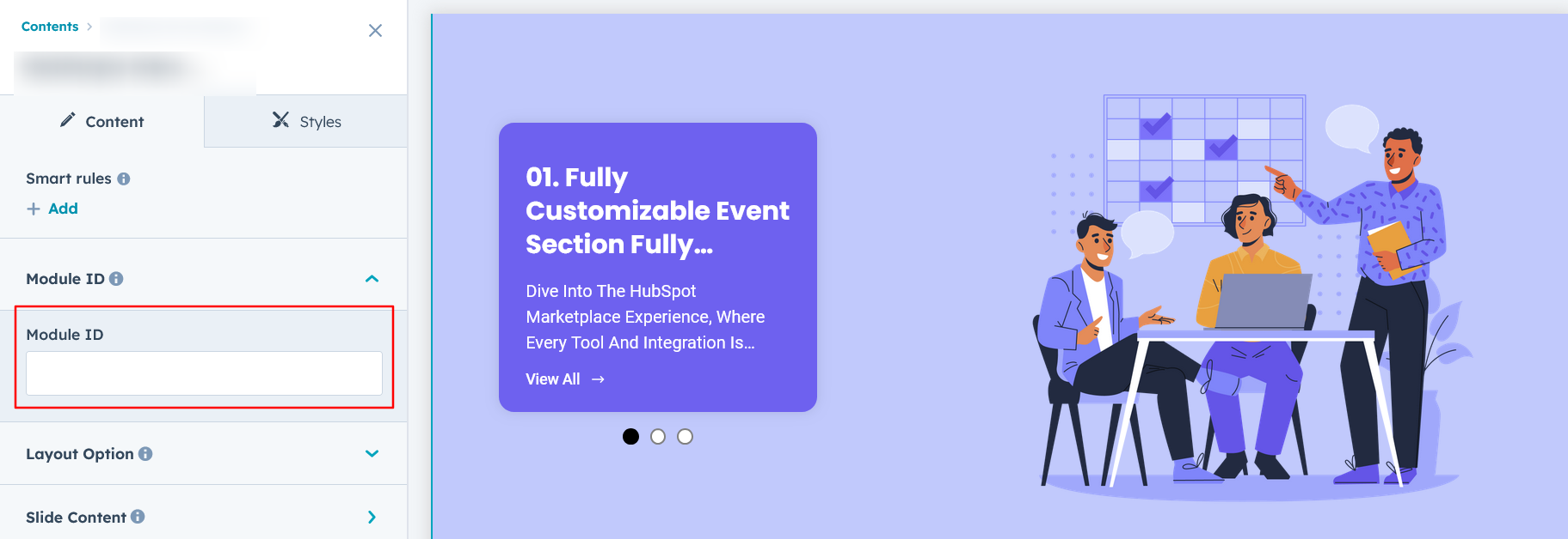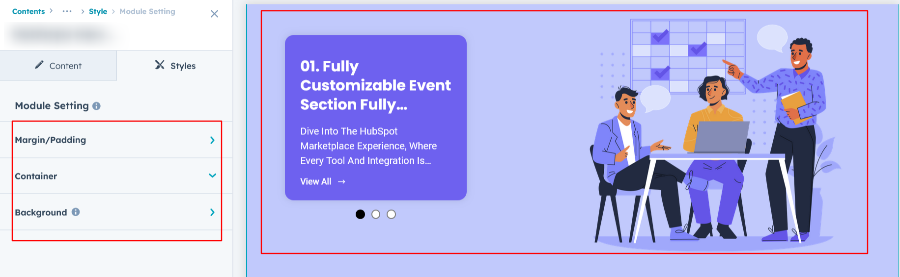 Adjust the margins, padding, background colors, and container width to achieve your desired look and feel for the module. In Layout 1, you can assign a different background to each slide for added variety. This flexibility allows you to fine-tune the layout and aesthetics, ensuring your design is visually appealing, functional, and user-friendly.