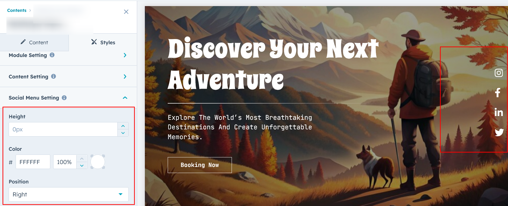 In Layout 2, users can customize the social icons' height, color, and position them on the left or right side as desired.
