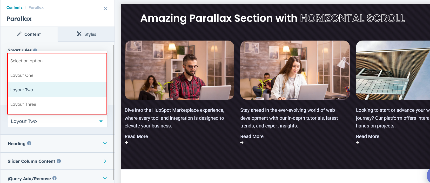 We hope you enjoy using our parallax module to create a seamless experience for both your users and your marketing team. At Code Accelerator, we're committed to ensuring your HubSpot experience is exceptional. If you need a custom HubSpot module or require a tailored HubSpot CMS or CRM setup, please don’t hesitate to Contact Us.