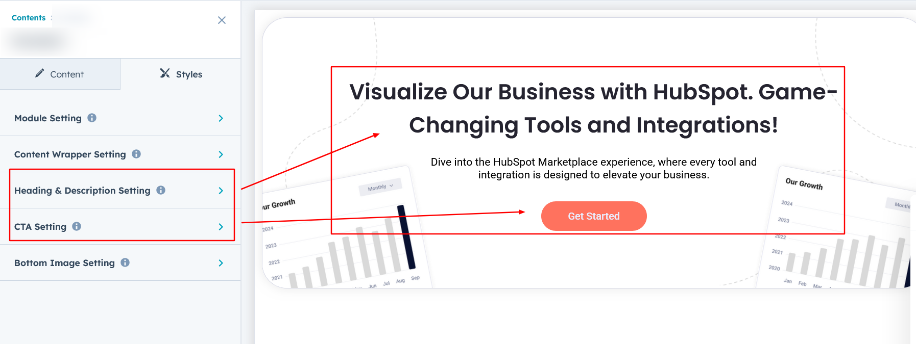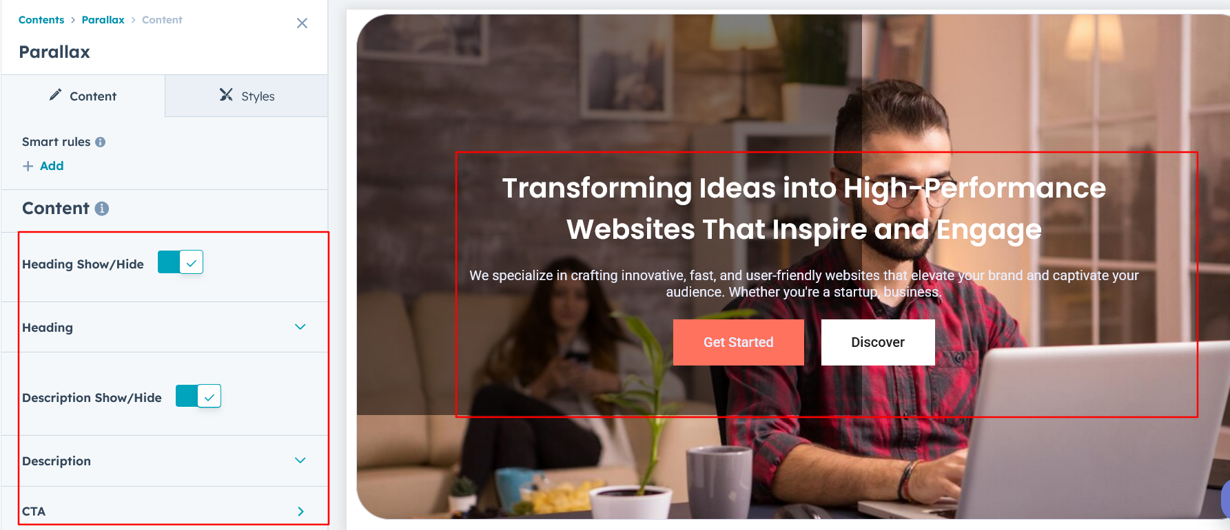 Heading/Description & CTA Setting :