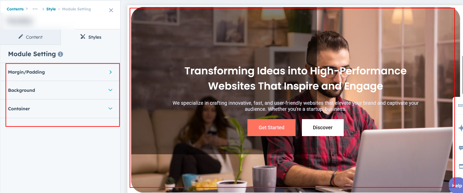 Adjust the margins, padding, background colors, and container width to achieve your desired look and feel for the module. This flexibility lets you fine-tune the layout and aesthetics, ensuring your design is both visually appealing and user-friendly.