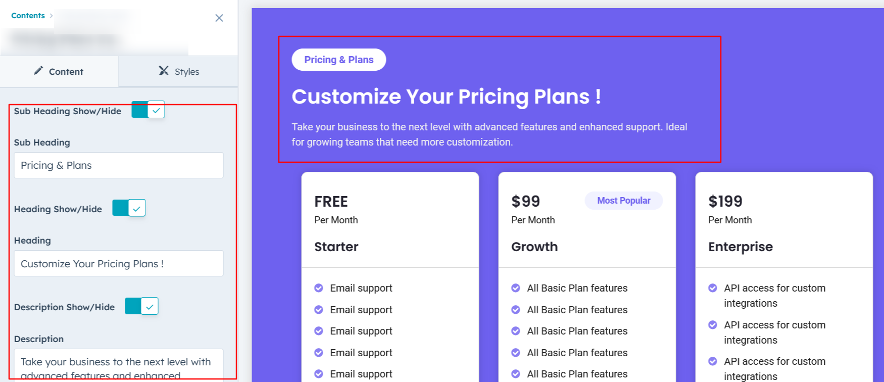 Easily customize the content in your module by modifying the Heading, Description & Sub Heading to suit your needs. You can also choose to hide the section if desired, giving you complete control over the presentation and functionality of your content.
