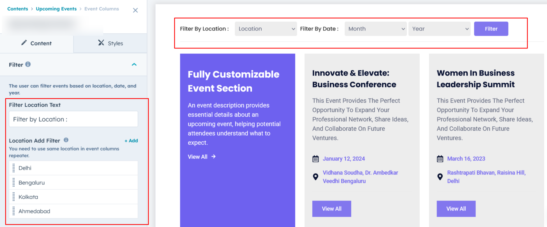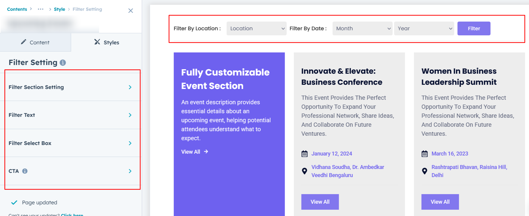 Location Filter → Allows users to select events happening in a specific city, state, or country.