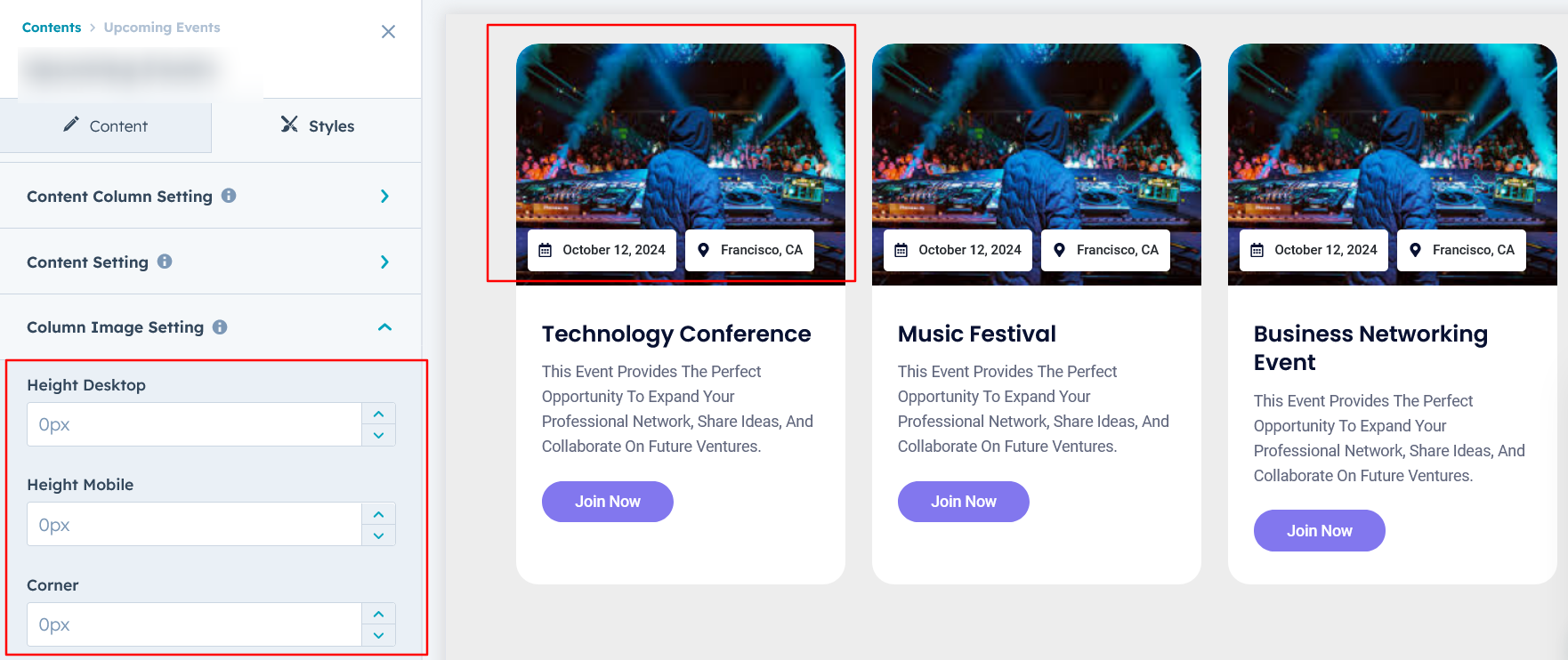 Users can customize the image height for both desktop and mobile views, and, if desired, add a corner radius to the image for a more polished and modern look.
