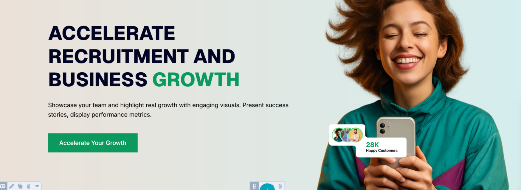 The Modern Hero Banner Module helps you make a powerful first impression with bold, responsive, and customizable hero sections. Designed for flexibility, it includes three unique layouts—growth-focused, people-driven, and digital showcase—giving you the freedom to present your brand exactly the way you want.