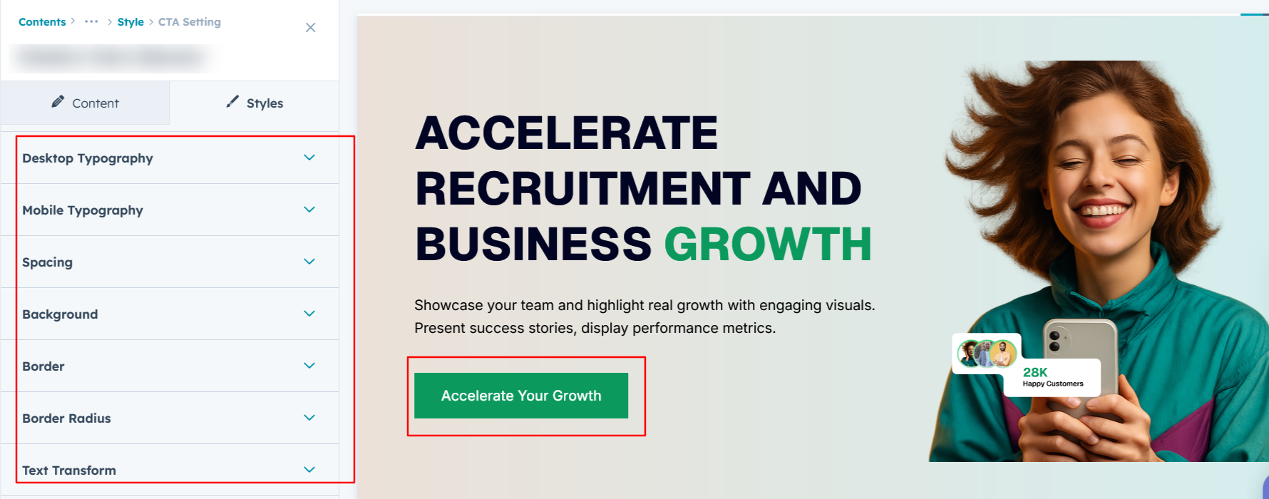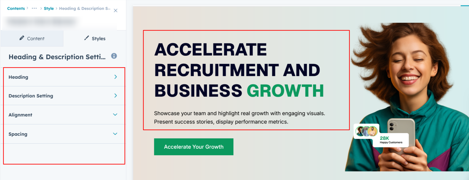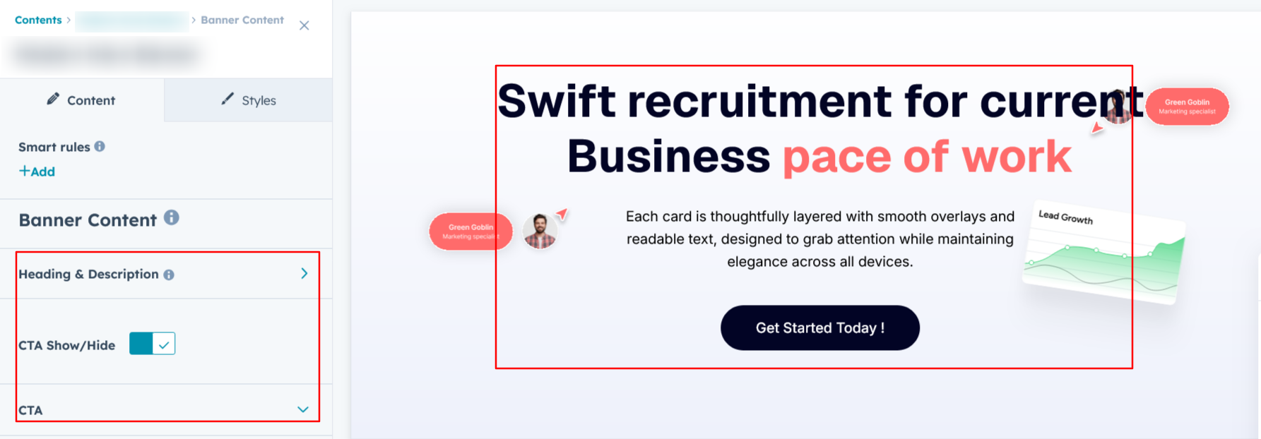 Flexible Content Options – Easily update headings, descriptions, and CTAs directly within HubSpot.