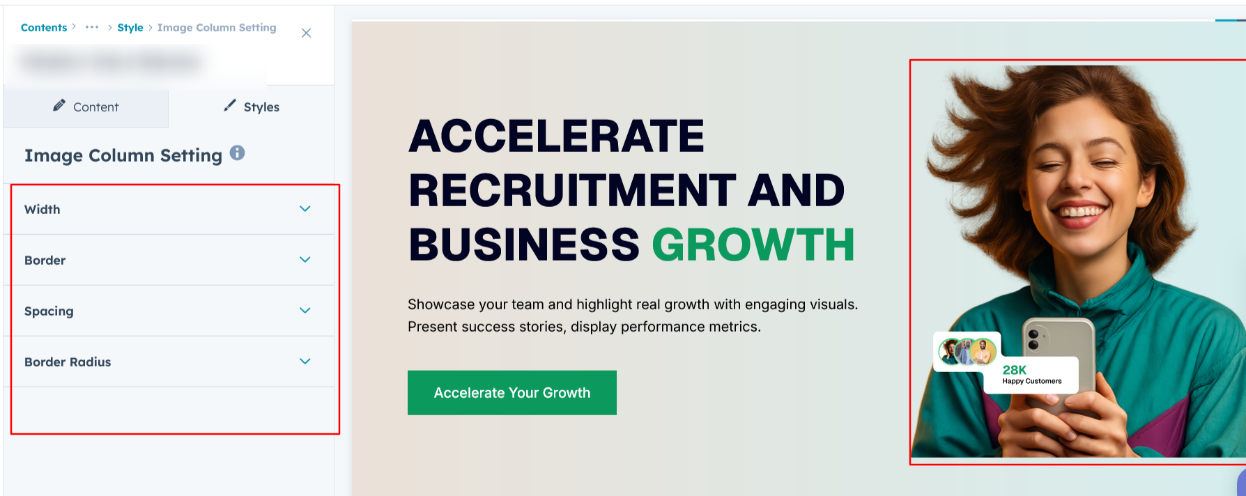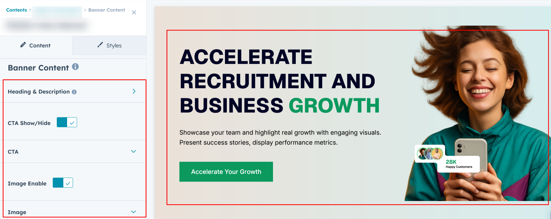 Easily update headings, descriptions, images, and call-to-action buttons directly inside HubSpot, without touching code. With mobile-friendly design, adjustable spacing, and complete style control, this module ensures your hero banner always looks sharp and performs seamlessly across all devices.
